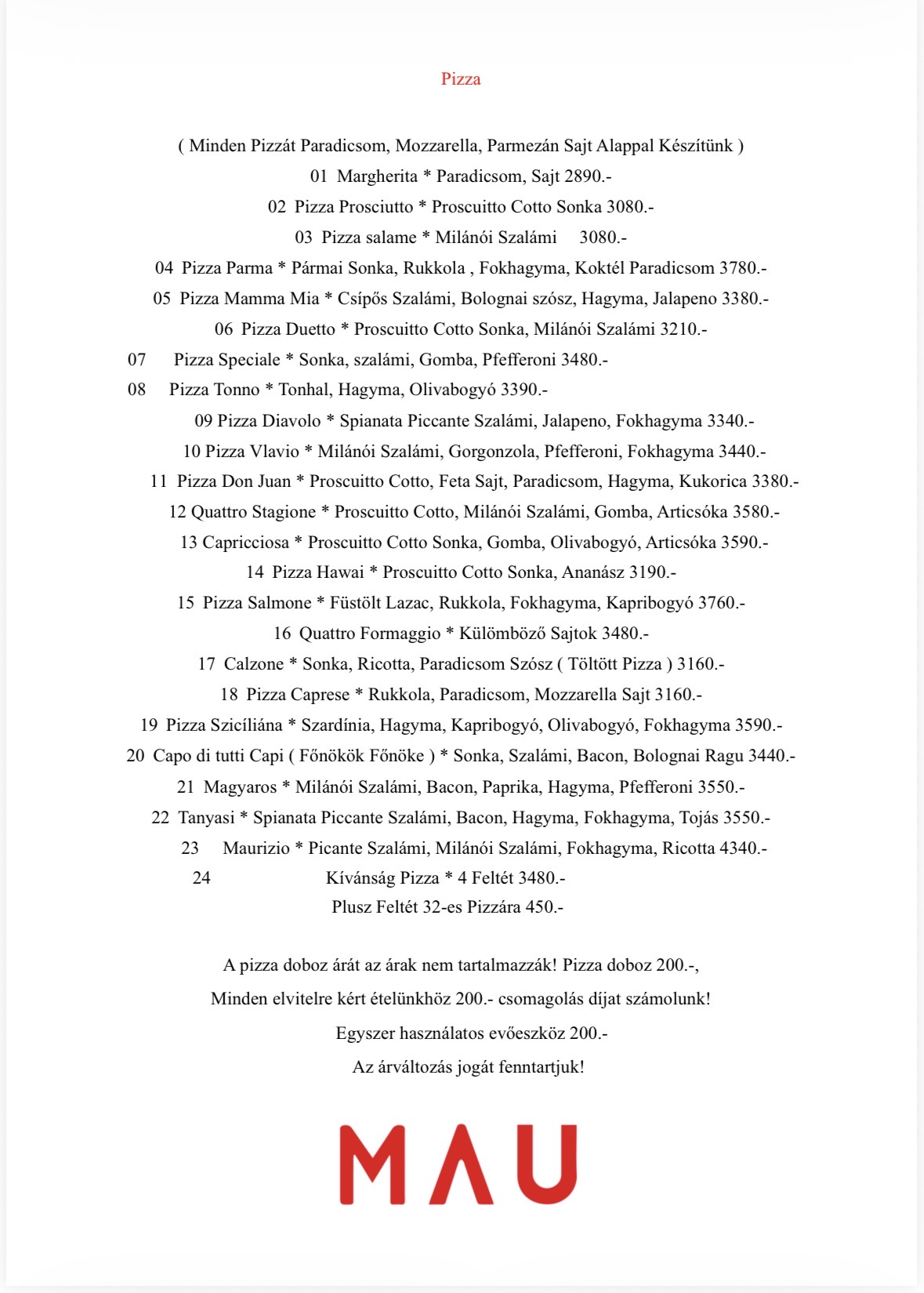 - 2014. október 07-én nyitottunk ki először pizzériánk ajtaját. Étlapunk eleinte saláta, pizza, tészta és tortilla ételekből állt. Később bővítettük kézműves hamburgerekkel, amik helyben gyúrt húspogácsával készítünk, valamint gyrossal minek húsa szintén saját pácolással készül és pitáját is mi frissen rendeléskor sütjük. Minden héten új leves és főétel ajánlattal várjuk kedves vendégeinket! Mivel ételeink frissen rendelésre készülnek, ezért forgalmasabb időszakban kérjük türelmüket!